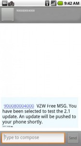Check out this picture we were just sent. Receiving an update notice via text message is semi-odd, but if it is truly a test then it sort of makes sense. It’s been quiet today on the update front, but this would match the information we had showing that the testing would begin again today.