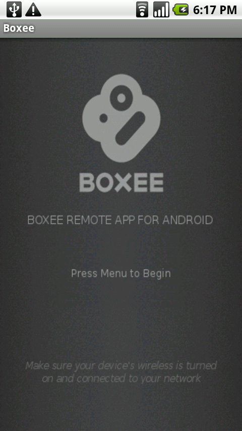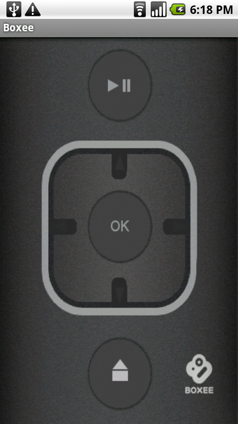 However, what makes this app great is the ease of setup; enabling one setting inside the Boxee client (shown above) allows it to be recognizable on the network. Once my phone’s connected, as well, the app scans for linked computers, bringing up a list which includes the name of my PC. From there, the app does its thing and connects. The remote interface comes up, and away we go.