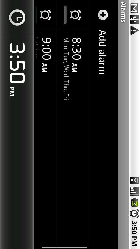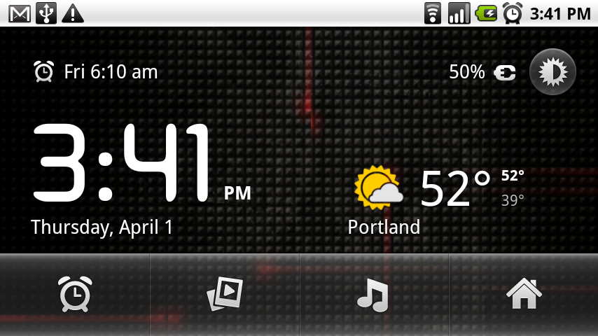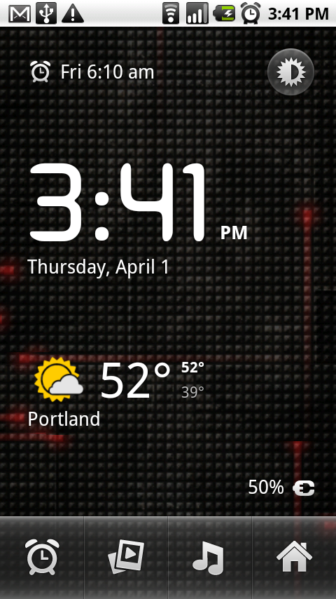 In my official 2.1 update video review from Wednesday, it was probably pretty disappointing for those of you who haven’t updated yet to see the simple Alarm Clock feature and not the new clock. Well, we’ve got good news! Remember all of those Nexus One 2.1 ported apps that we were spreading like wild fire a few months back? The Desk Clock app works perfectly with your newly updated 2.1 Motorola Droid device. And as you’ll see from the screenies I just capped, the weather now works and the live wallpapers run in the background! Woohoo!