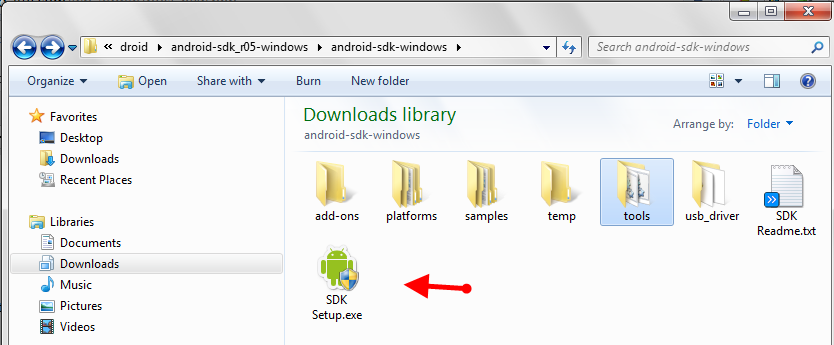 5. Head back to the folder where you unzipped the Android SDK, look for the “SDKSetup.exe” and run it.