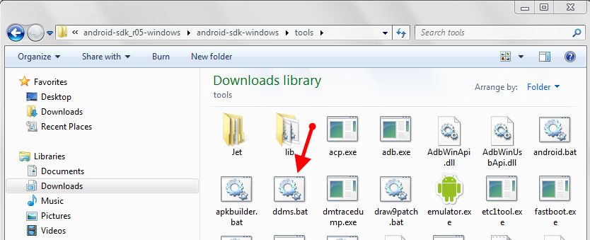 10. In your Android SDK folder, open the folder titled “tools” and look for “ddms.bat”.