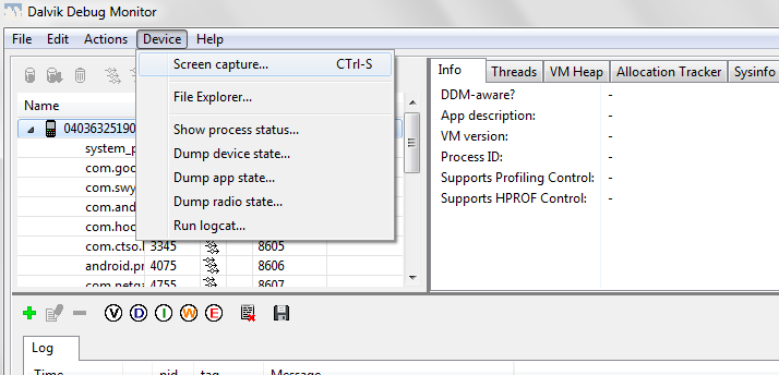 13. Choose “Device” and “Screen Capture” in DDMS.