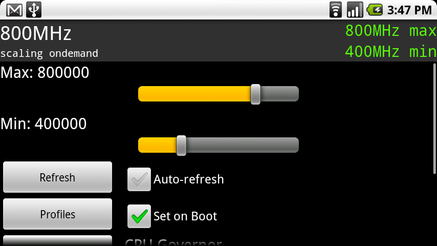 If you have gone through the process of installing one of the new CyanogeMod ROMs, then chances are that you are unable to overclock it past 600Mhz. Don’t panic! We can fix you! What we’ll have to do is install a new overclock-able kernel which is super simple.