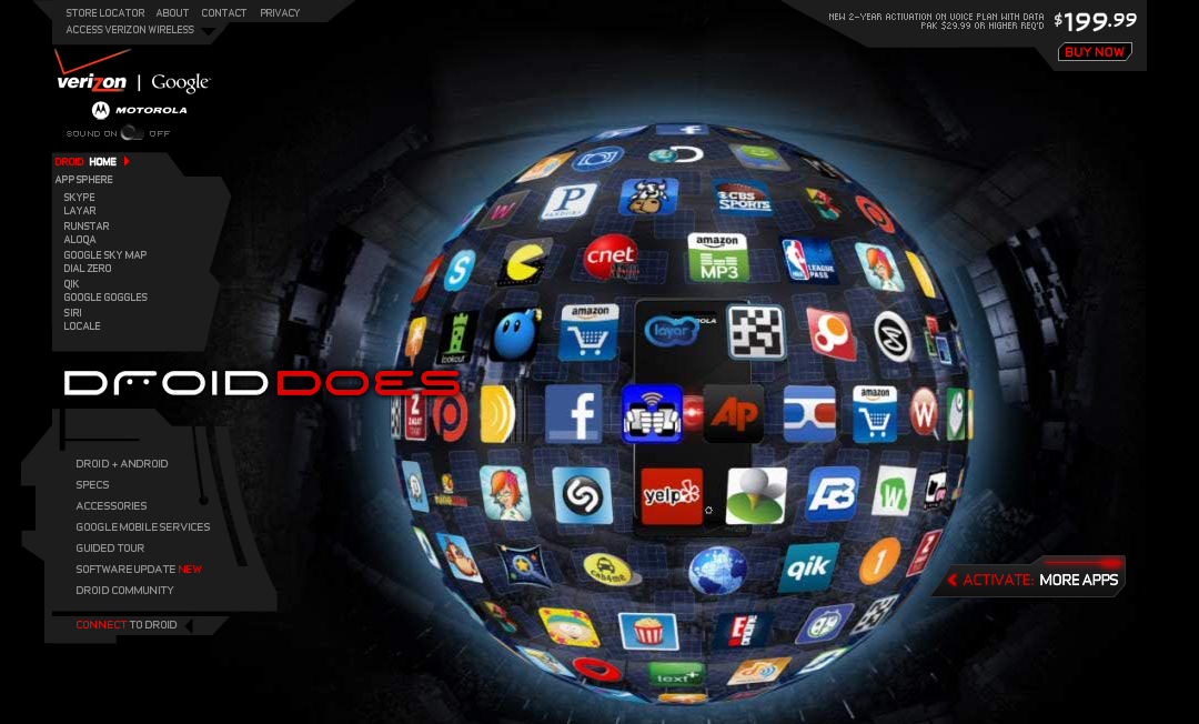 The Motorola Droid site from Verizon is giving its best shot at becoming relevant. After dropping a couple of new commercials, the actual site appears to have undergone a complete overhaul which now includes what they are calling the “Appsphere.” Aside from the “Verizon” tab in the Android Market, this actually looks to be a pretty good spot to check out some of the latest and more polished apps.
