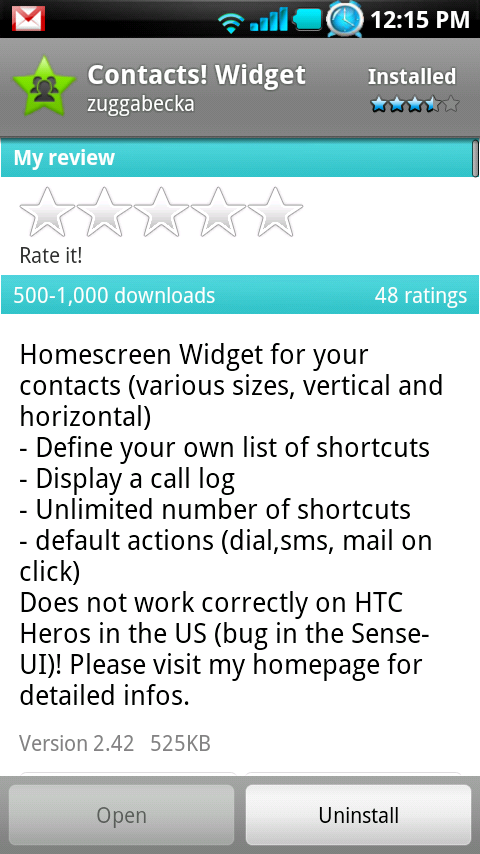If you have been on the prowl for a sweet widget which can display your favorite contacts, check out this app called “Contacts! Widget.” Obviously the screenies up above are not from a Droid, but this app does work and actually has become a staple on my phone. You can set up widgets to display recent calls or even make up your own custom lists. There are quite a few options which can match your style and the 2×2 cards are nice space fillers as well.