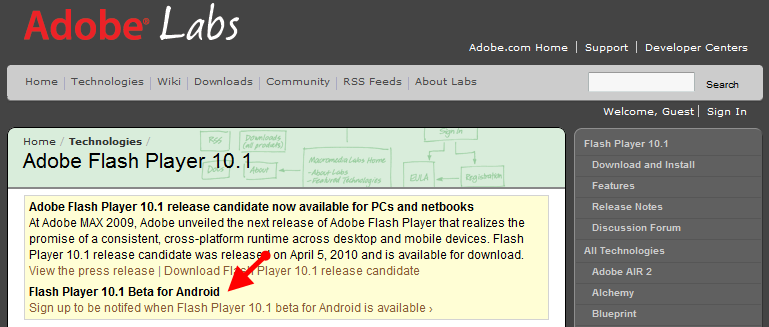 Adobe is allowing users to sign up for the Flash 10.1 beta for Android as of today. That’s right, we are definitely creeping closer to the launch of the game changer for mobile devices. It should be noted that by signing up, you are not receiving the beta today, but you are entering your name into their system as someone who wants to test it when it finally is released.