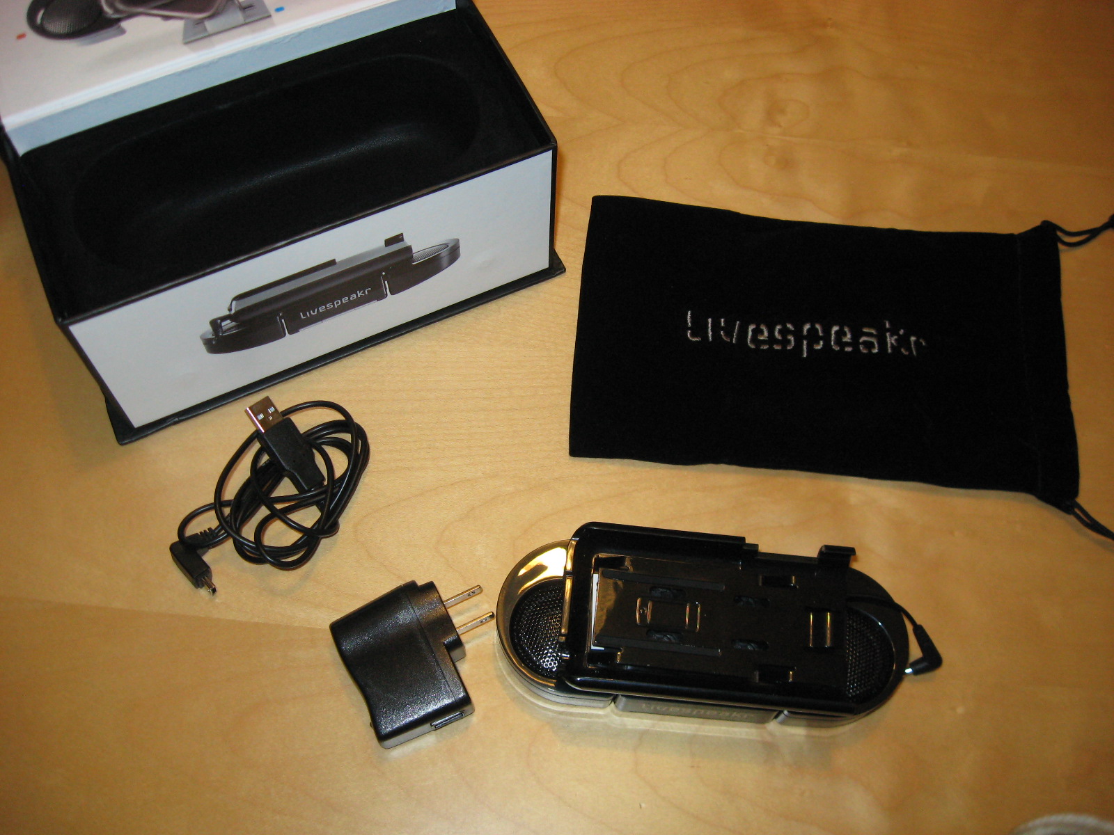 1. Packaging: Pretty look and a fun little box that can be re-used for traveling. The iPhone on the box and instruction manual were cringe-worthy, but can be somewhat forgiven as we know Livespeakr is just now diving into the Moto Droid scene. Score: +1