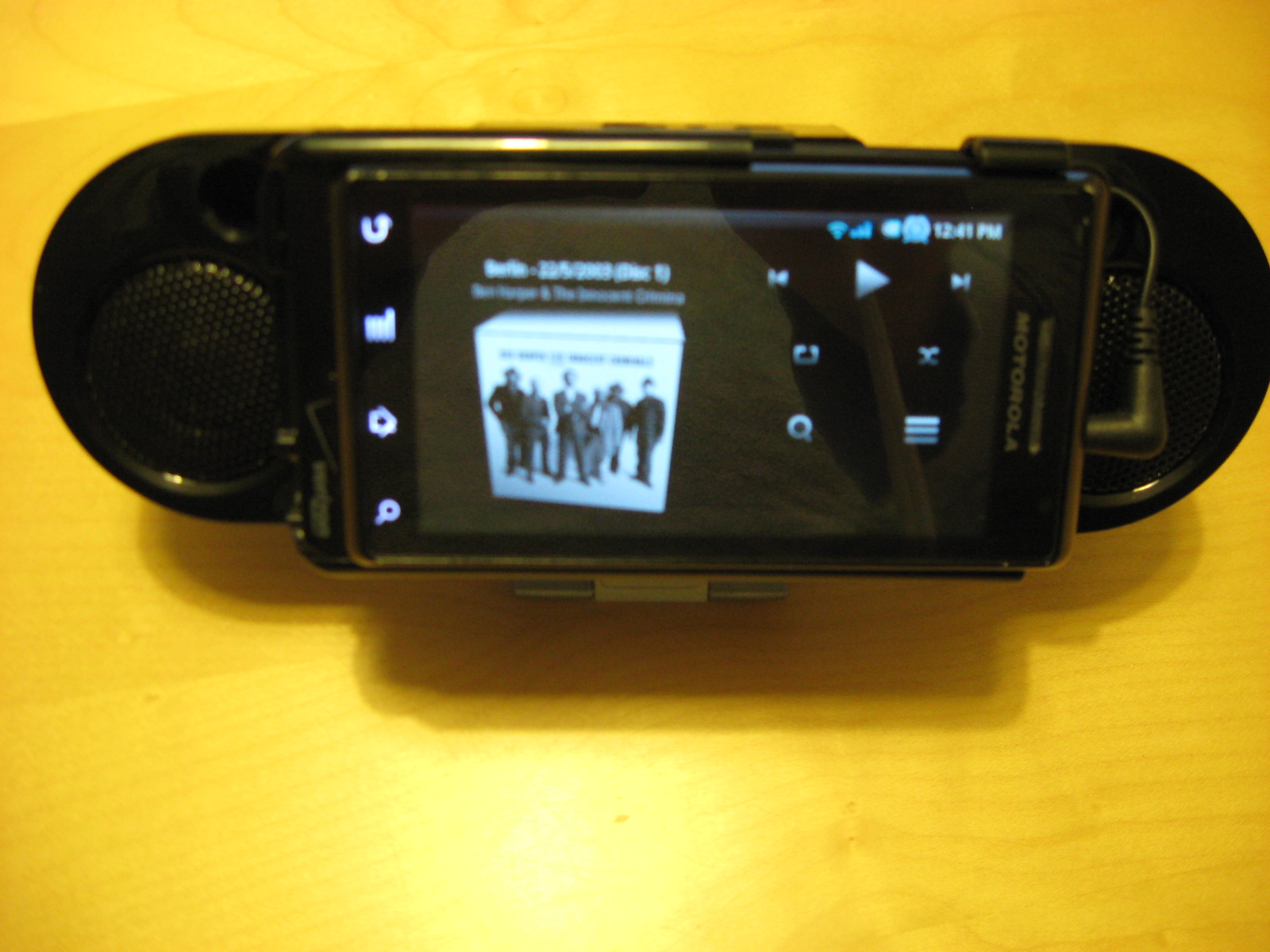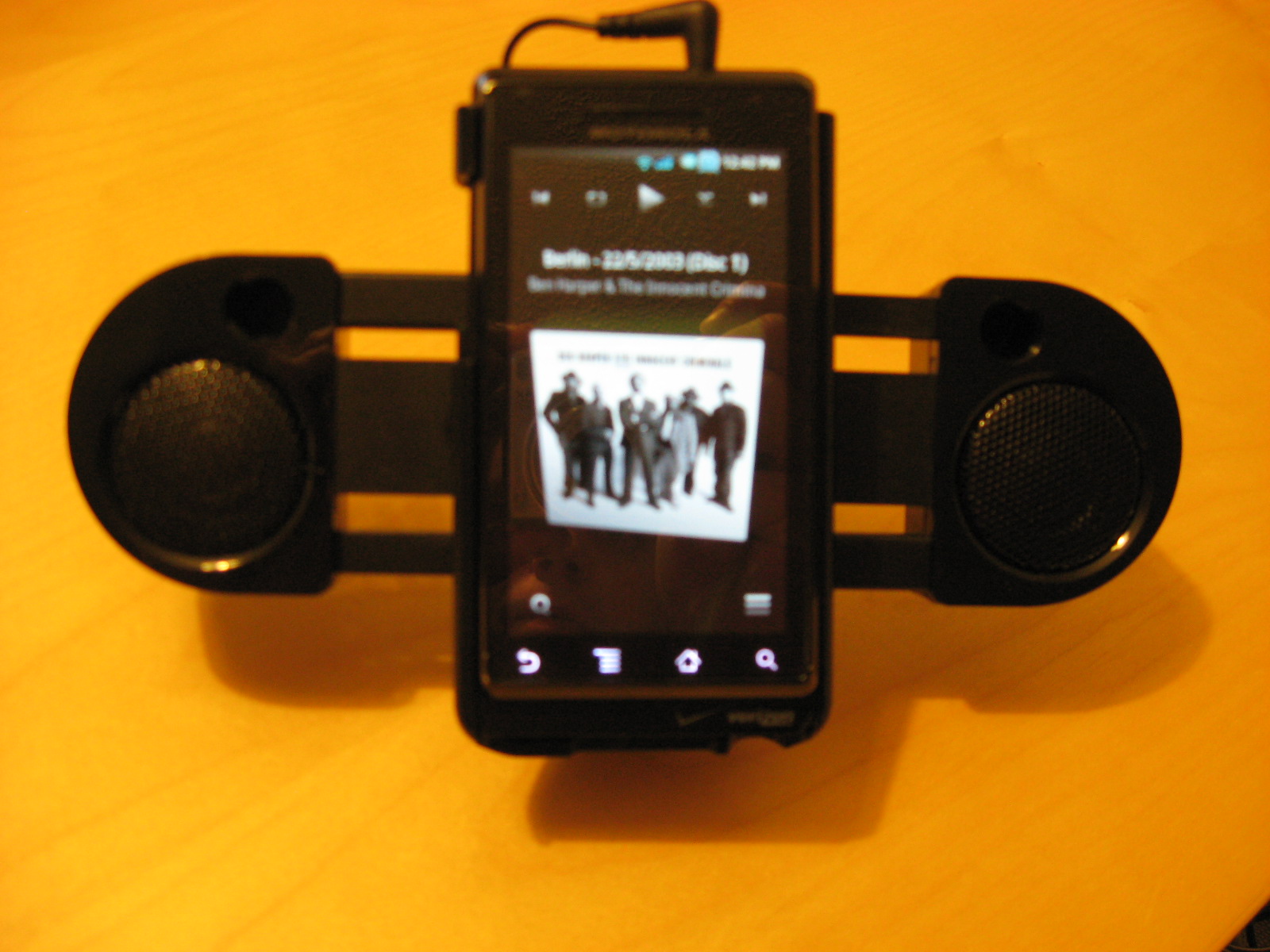 5. Battery: As you know, this puppy is portable and after charging it once and using it for 2 hours, it still seemed like it had plenty of juice. (They claim up to 16 hours worth.) Also, your Droid runs on battery while docked and since it can sleep during playback, your Droid isn’t drained much either. Score: +1