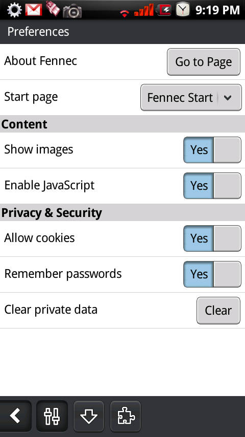 - You can’t open links from other apps using Fennec; we should have this for the next build.