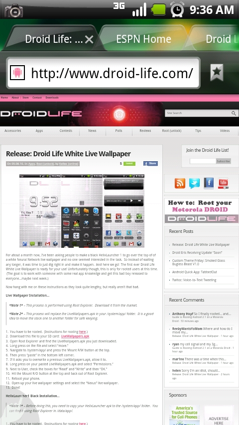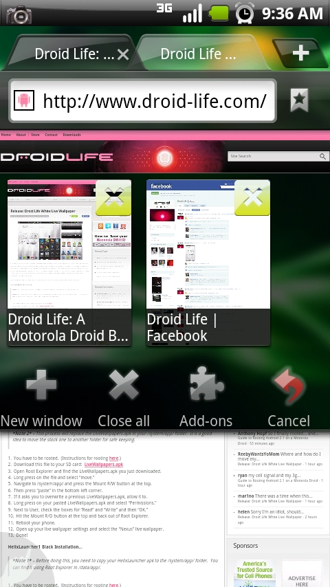 Secretly, I’ve been playing with the Dolphin Browser HD for a couple of weeks now (I know, shame on me for not sharing) and I’ll just say that it is definitely a browser worth your time. The tabbed browsing of previous Dolphin browsers has always been fantastic, but the new HD version adds some extra UI flair. A side-to-side swipe lets you quickly view tabs, you can toss in “add-ons”, download Youtube videos, multi-touch that actually works and so much more.