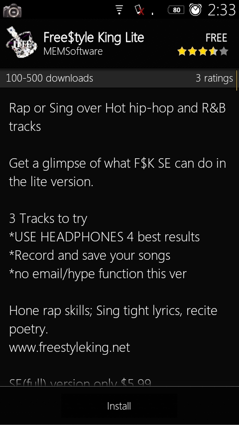 - Free$tyle King: (lite and $5.99) For the hip-hop star in all of us. Free$tyle King allows you to record vocals over pre-loaded tracks and then share them with your friends.