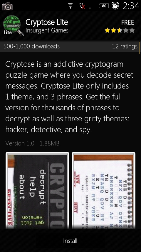- Cryptose: (lite and $1.99) A game for the puzzle crowd and all about decoding secret messages.