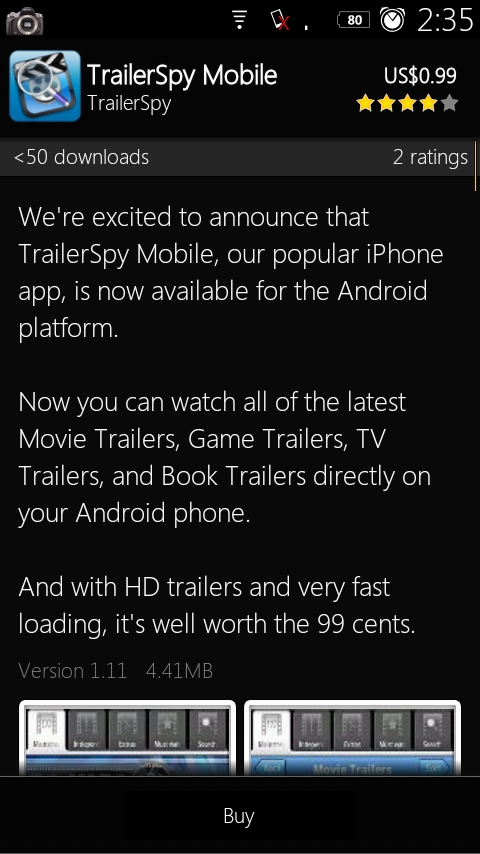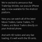 - TrailerSpy: ($0.99) Want to continue on as a movie trailer guru? TrailerSpy brings you all of the latest movie, game and TV trailers while on the go. Apparently plays some in HD.