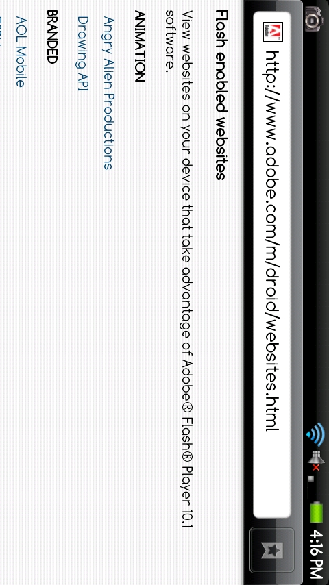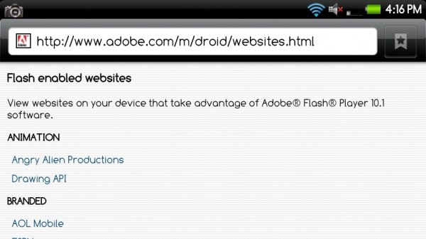 You ready for it yet? Adobe has released a site dedicated to the Motorola Droid which lists out Flash 10.1 enabled/optimized websites. The idea being that once your device has been updated to Android 2.2 with Flash 10.1, you will know exactly which sites can take advantage of your new goodness.