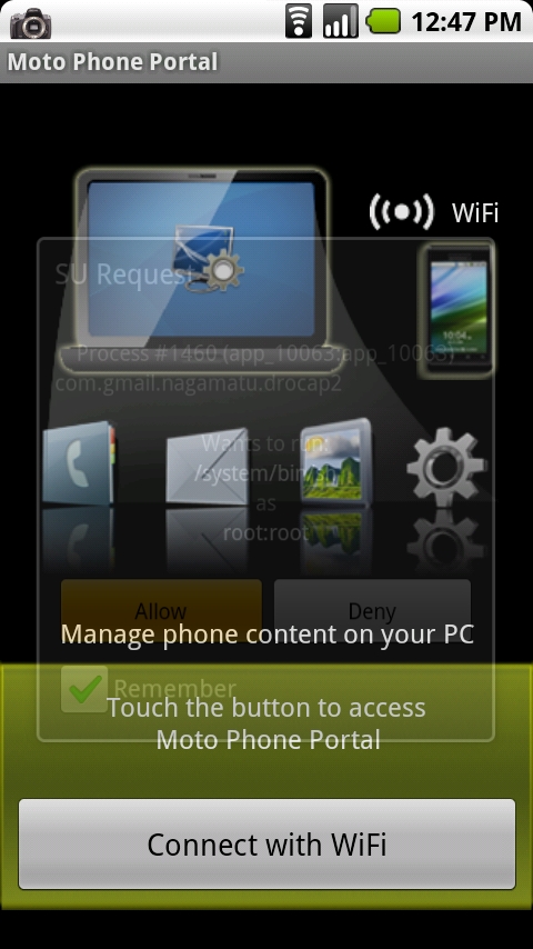 The Moto Phone Portal allows you to wirelessly connect your Droid to your PC and transfer files just like if you had mounted it via USB. It is easily one of my most used apps and it’s a shame that Motorola decided to shove it aside and attempt to let it die in the background. Unfortunately for them, we won’t let it!
