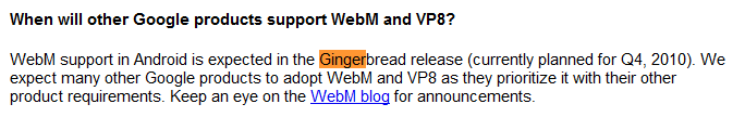 Yep, we’re already talking about a new version of Android well before we’ve actually seen Froyo running anywhere. During yesterday’s keynote at Google I/O, there was a ton of talk about all things multimedia including a new project called WebM. And yesterday, the world spotted this FAQ from the WebM site which hints at the next Android OS…
