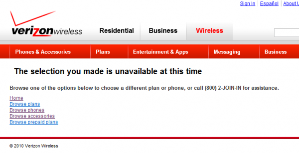 That would be the screen you would see should you visit the official VZW Droid Incredible page and click the “buy now” link. Weird right?