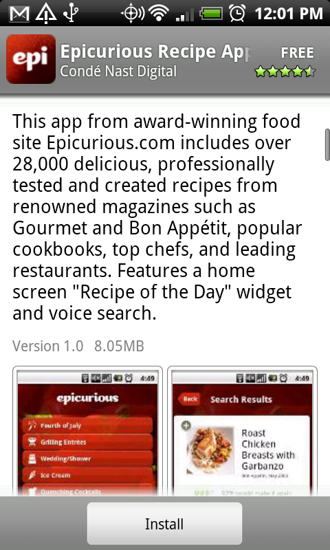 Any Android chefs out there? You’ll be pleased to hear the news that Epicurious has launched an Android app which should leave you coming away pretty impressed. For a first release, this thing is as polished as any app I’ve seen anywhere to date. This is the quality stuff we are wanting to see!