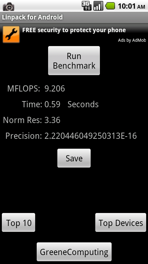 Update 7:37am: Had this 2.2 build up and running for a good 45 minutes now and I’ve got to admit that it is pretty damn fast. It seems like the longer you play with it, the faster it gets. Interesting. While the MFLOPS in Linpack aren’t there, check out this Quadrant benchmark I just ran. If only wi-fi worked…
