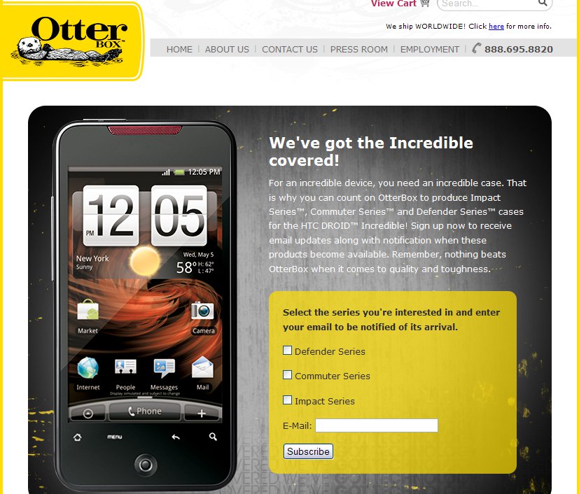 Remember those reader shots we had of the Droid Incredible displaying its inability to withstand a simple pocket drop? Well guess what DI users! Otterbox and their series of ultra-protective cases are on their way! You can compare these to the Body Glove cases you’ve seen in the past for the Motorola Droid which many consider the top dog for maximum protection.