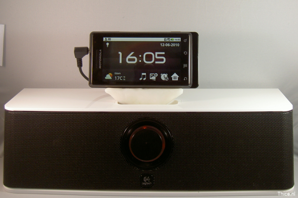 When the Motorola Milestone is connected to the adapter it will go into multimedia docking mode right away and start charging. After connecting the audio cable to the headphone connector it will output its audio to the dock as well. The Motorola Milestone is standing solid on the adapter and works great.