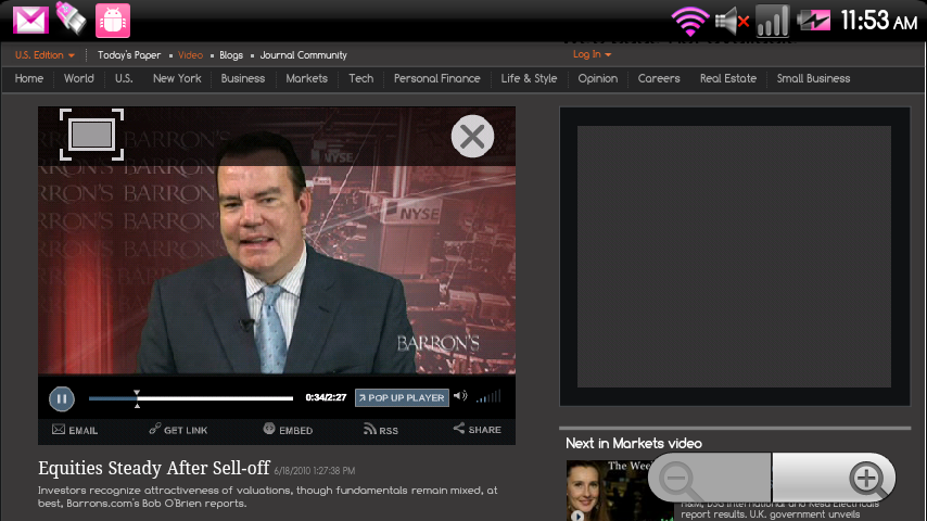 If you’ve rooted your Droid and installed a Froyo ROM plus one of the Flash 10.1 betas, then we’ve got a little trick for you. While watching a Flash video on any website, you can long press on it, prompting an option to go to full screen. As you can see from the sceenie above, the grey box in the top left of the video is what it should look like. And if you decide you don’t actually want full screen, you even get an “X” to close out. Sweet right?