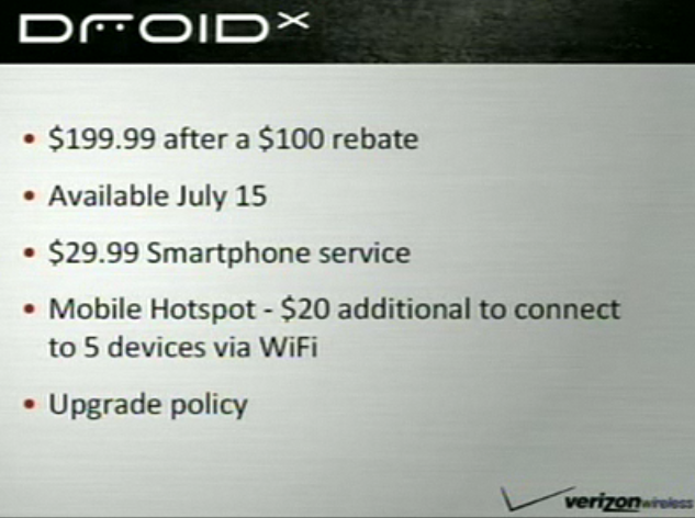 Through the Droid X live media webcast we were invited to join, we were able to cap many of the slides which we featured throughout the event. If you ever wanted the official details of this ridiculous device, we’ve got them for you.
