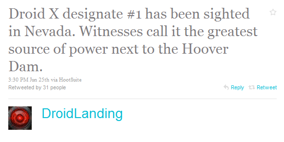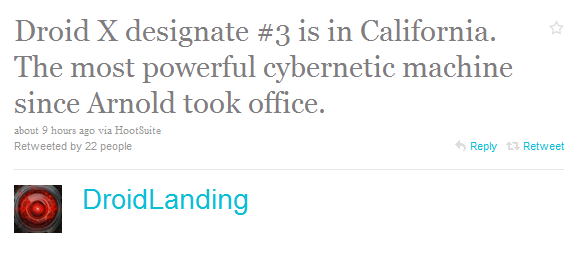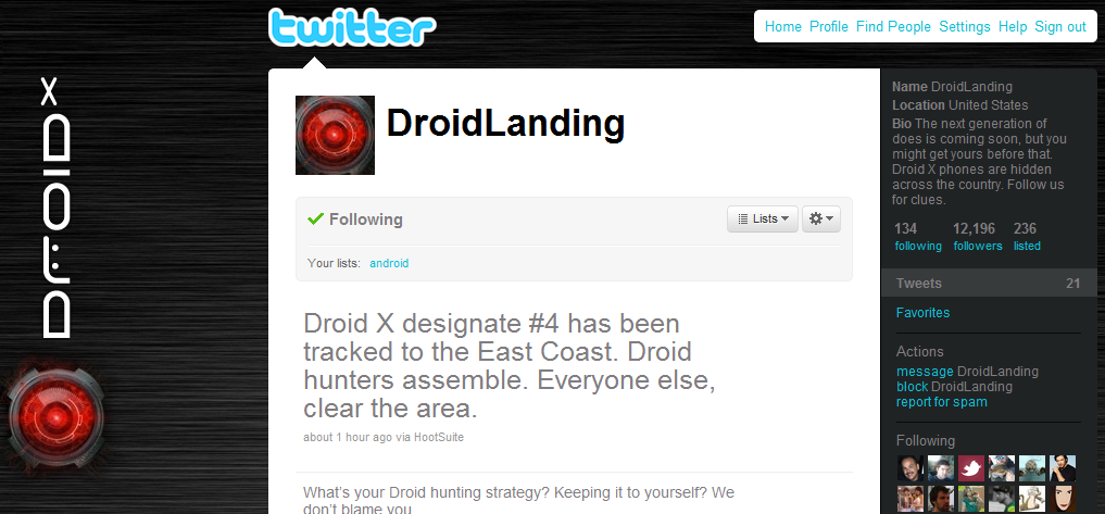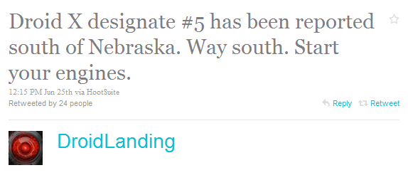 Over 12,000 people are now following the Droid X scavenger hunt which has been established through @DroidLanding, a Twitter account which plans on giving away at least 12 Droid X devices sometime before its July 15th release date. While the account has already had one major slip-up, we wanted to point out that its clues have become much more specific over the weekend. We have specific states mentioned! Time to start following…
