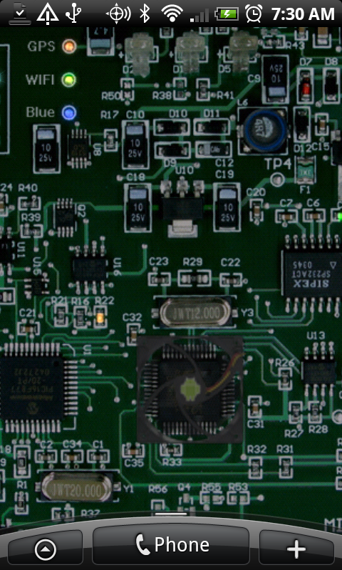 I love live wallpapers, but even this new one might be a little too geeky for me. (Maybe.) The aCircuit Board live wallpaper has launched and shows you what the inside of your phone could possibly look like, only on your screen. It’s fully interactive, changes lights when you toggle on or off certain settings, gets crazy lit up, and costs about a $1.13.