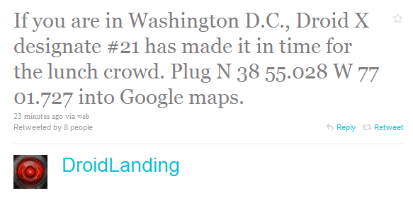 Only 1 Droid X scavenger hunt winner yesterday and we’re now only 4 days away from launch. They better kick this thing into gear tomorrow and start pumping out 3 a day or they might not finish. Today the hunt took to the nation’s capital.