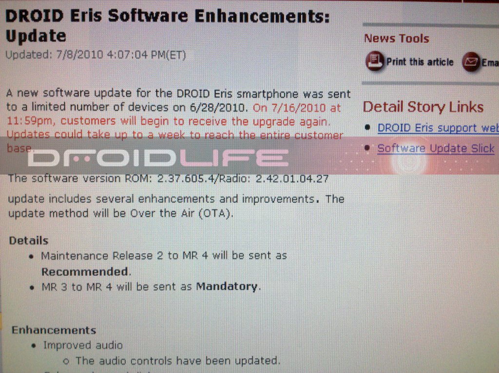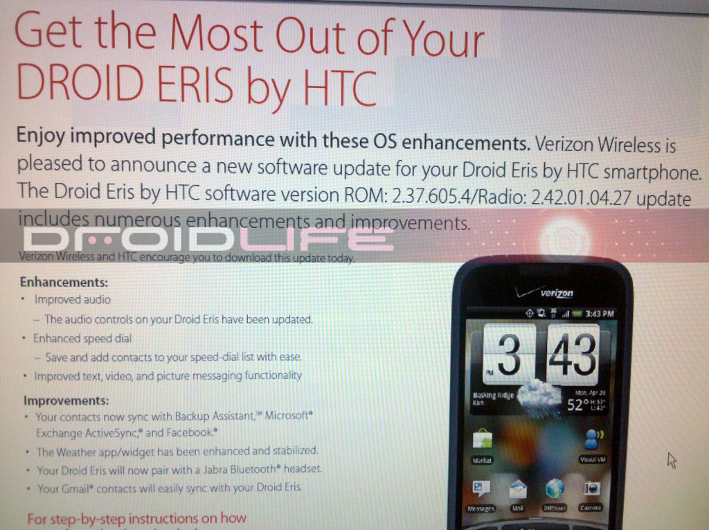 You haven’t been forgotten about just yet Eris users! Nice to see Verizon and HTC still supporting one of the original Droid family members.