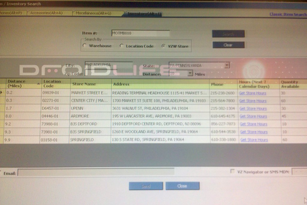 Been feeling a little heat this morning from some people not wanting to believe that the Droid X stock will be limited on launch day, as we reported earlier. Well we’ve just grabbed 5 additional screenshots from 5 pretty major markets and I’d say again that inventory looks to be pretty limited to me. Some of the major stores have upwards of 60+ (which I previously mentioned), but some are seeing as little as 5 (yes I said 5).