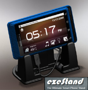 ezeStand is a versatile desktop holder for your Smart Phone or Personal Media Player device. It holds all of the latest Touch Screen devices including Motorola Droid and Droid Incredible.