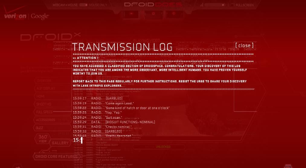 Update: Cheers to Jared for showing us that this code came from the new Droid X commercial we posted this morning! Nice work! What a fantastic campaign.