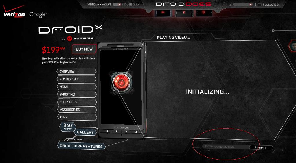 Anyone notice on the new Droid Does page for the Droid X that there was a box for you to input secret codes? Check out the image below to see what we are talking about…