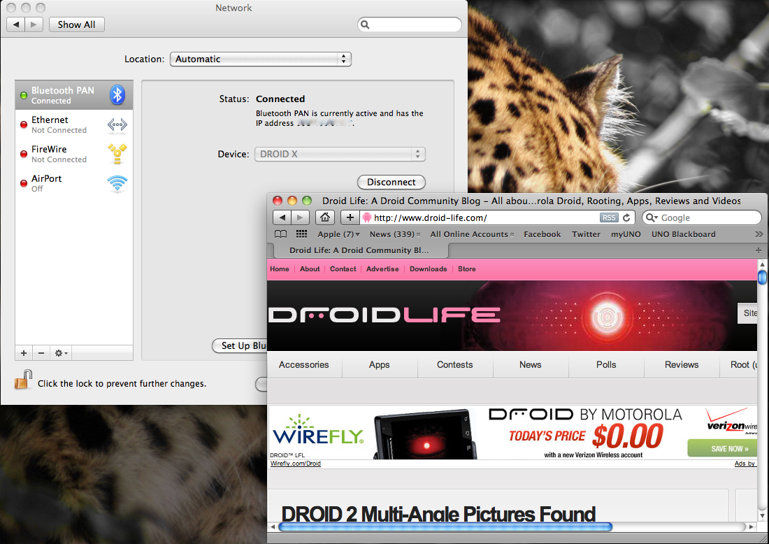 Since we don’t have root access to the Droid X just yet, we also don’t have a wireless tethering app available, right? True, but what we do have is a Bluetooth option! If your computer allows for Bluetooth connections, then you can have your mobile hotspot on the go without being directed to VZW for payment. Oh yeah, this feature is fully confirmed and working on Mac, Windows and Ubuntu systems. You can still USB tether using PDANet or Tether, but who doesn’t love to remove that pesky cable?