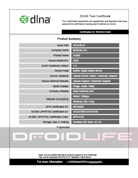 With the Droid X now a thing of leaked information’s past, it is time to start focusing on the next family member which is rumored to be dropping in August. Let the official Droid 2 watch begin. First up, the DLNA certification that it received back in May. What exactly is DLNA? I’ll let their website describe this multi-media loving certification…