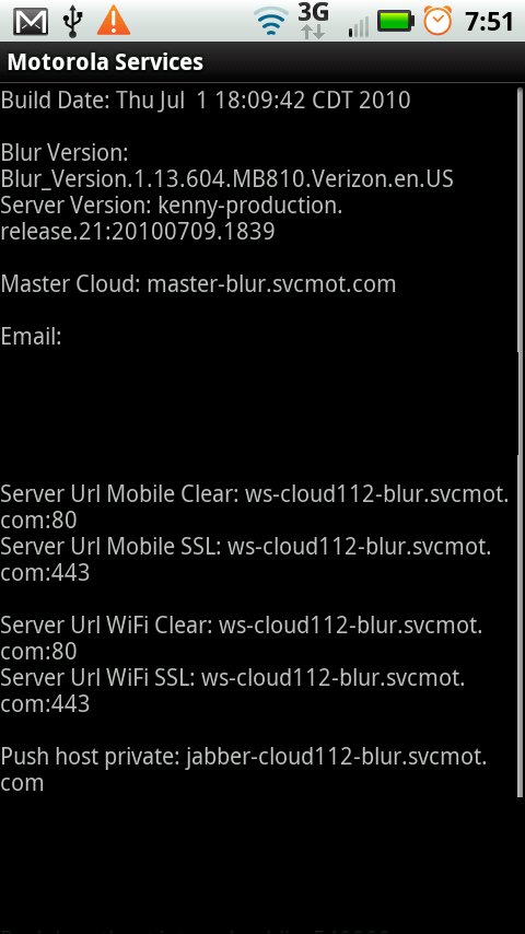 Not exactly sure who made this into or why it is an issue, but the Droid X is definitely running a version of MotoBlur. If you go into your Motorola Services Info screen by dialing *#*#4636#*#* on your dial pad, it’s as plain as day. Well unless “Blur_Version” doesn’t actually mean Blur.