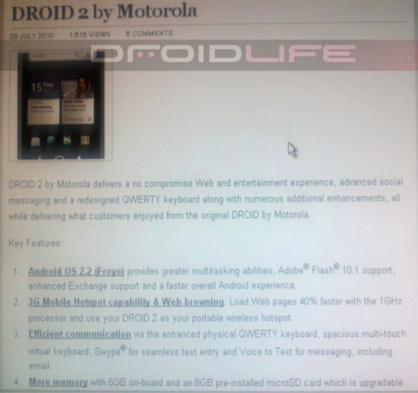 According to shots from an official Verizon company blog (Yes, even Big Red blogs!) we have some confirmation on a few additional details for the Droid 2, plus a new rumored release date. These shots reassure us that Android 2.2 will come pre-loaded with full Flash support, the physical keyboard has been “enhanced,” and a bundle of bloatware to boot. Oh you don’t care? You just want the release date info?