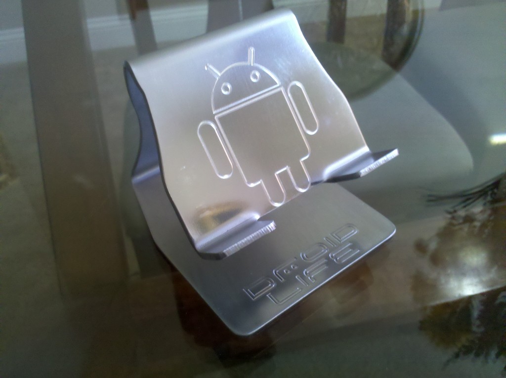 Just wanted to quickly share this DIY Droid stand that one of our readers sent in made of 12ga stainless steel. Coolest. Thing. Ever. And maybe “DIY” isn’t the right tag for something listing “ability to bend steel” in the instruction manual. Beastly.