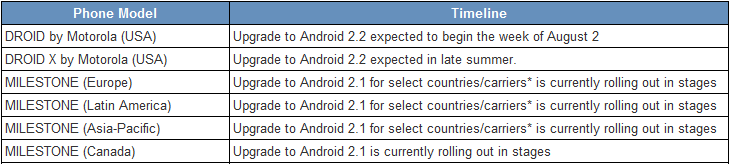 Verizon has said that the Android 2.2 for the Droid will start to roll out on Tuesday, August 3rd and Motorola basically confirmed that with a timeline update. Yes, that same dreaded timeline. While we knew about this info after receiving an email from Moto’s forums manager, we now see that the Droid X has been added to the list with some not-so-specific info.