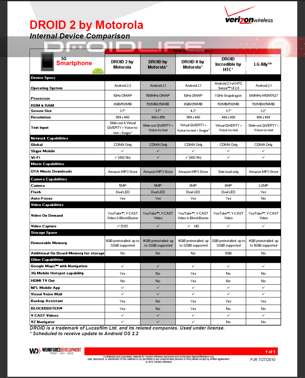 - The D1 column is highlighted, meaning the Droid 2 is around the corner and VZW employees are being trained into pushing customers toward other devices.