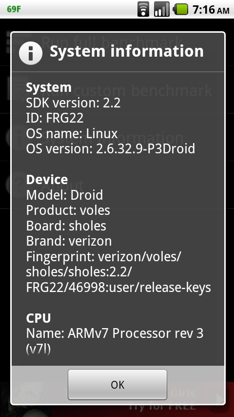 We have no idea why a “newer” build for the Motorola Droid would already be floating around, especially on the week that the official OTA update is rolling out, but that’s exactly what we have. The new build number is FRG22 and that’s basically all we know. We’re guessing this is a simple bug fixer and can’t have anything incredibly different than FRG01B which is hitting devices as you read this, right? Only one way to find out!