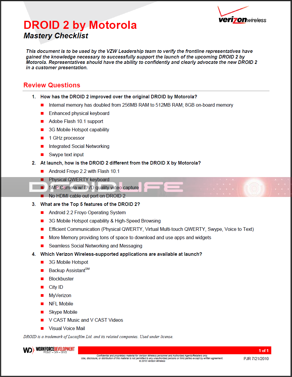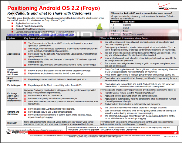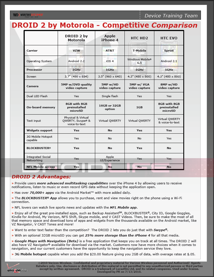 Here is the rest of the training guide for for the D2 which shows employees how to sell its top 5 features, Android 2.2, and compare it to top phones on other carriers…