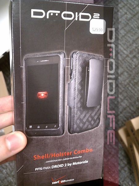 It was only a week ago that we started seeing Droid 2 accessories popping up at Best Buy stores and that seemed a little odd with out an announcement for the device, but now we’re seeing the official stuff readying for launch at Verizon locations. Pretty much seals the deal for an official announcement next week, I’d say.