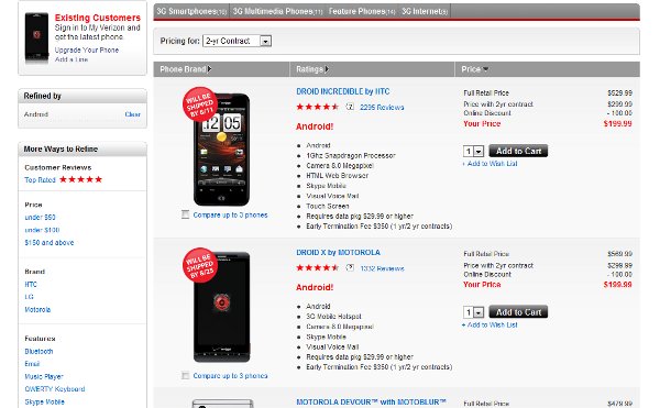 You can still view the Droid 1 by hitting up droidoes.com, but after clicking on the “Buy Now” button you’ll be directed to a dead page meaning the D1 is officially gone. Also, if you attempt to simply pull up the listing in VZW’s smartphone section for the original beast, you are going to come up empty as you can see from the screenshot above. So where is the Droid 2 then?