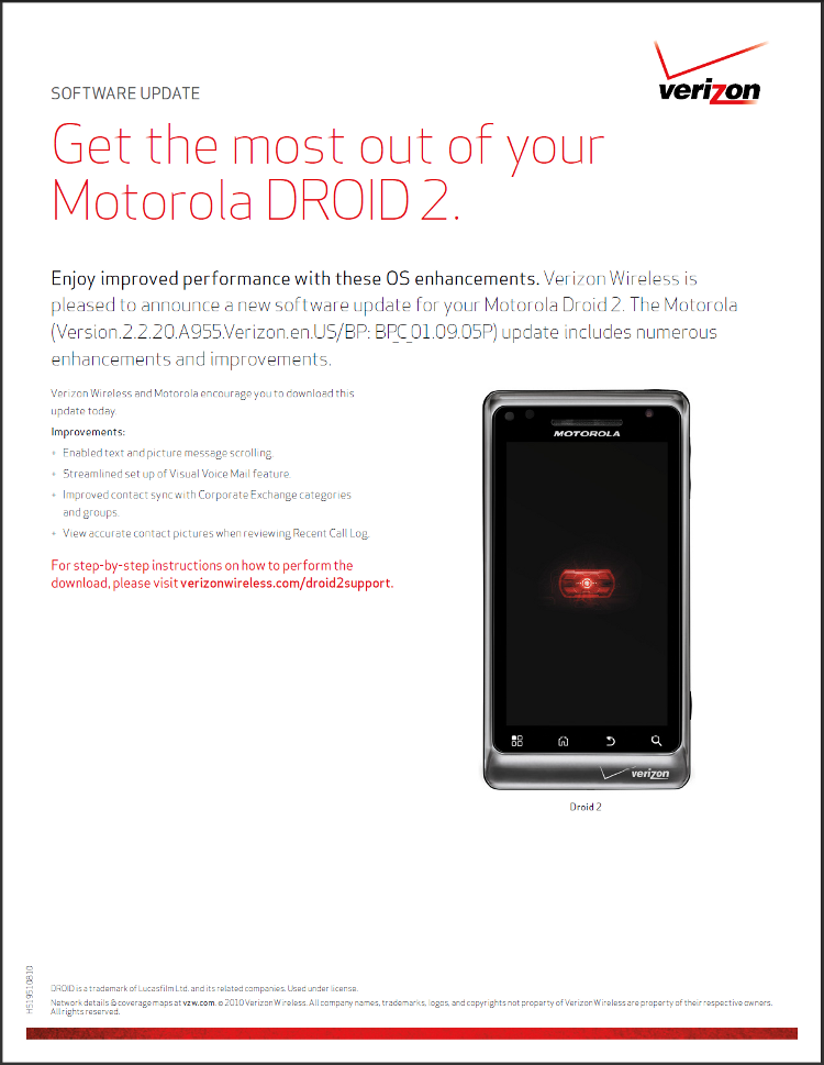 If you own a Droid 2, you should be receiving a minor update over the next couple of days and in fact, there is a pretty good chance that you have already been prompted to install it. The update, although minor, does fix a couple of things which will enhance your D2 experience…