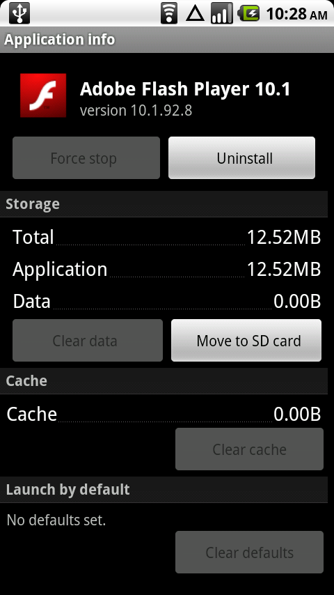*Note* – If you are on a 2.2 ROM and can’t see Flash in the market, try going into Settings>Applications>Market and clearing data/cache and then force stopping it. It may appear afterwards.