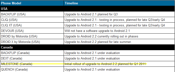 Just yesterday, Canadian Motorola Milestone owners were left with the thought that they may never see Android 2.2 after Moto released a timeline stating the update was “under evaluation.” And then today happened. It looks now like the Milestone, Droid cousin, and friend up north will in fact see Froyo, but not until the 1st quarter of 2011. Talk about leaving yourself a cushion.