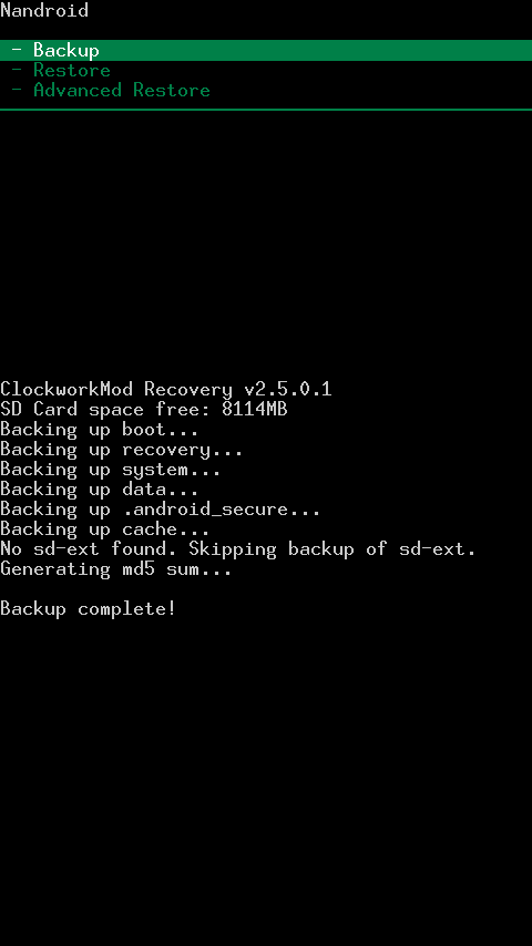 5. It is now time to create a full nandroid backup and prepare for custom ROMs!